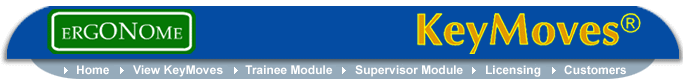 • Smaller companies, with trainee populations of from ten to a few thousand persons, typically choose Ergonome Hosting. Ergonome provides passwords and access to the Program on Ergonome’s servers for both trainees and supervisor. Larger companies often prefer to integrate the KeyMoves Training Program into their existing training management systems.
